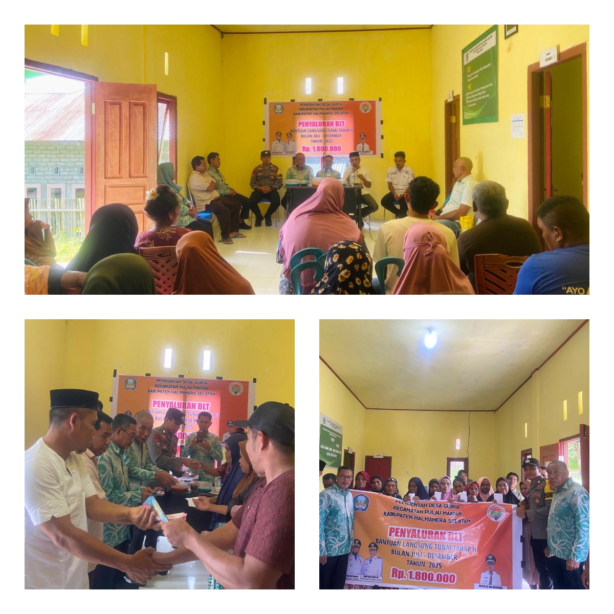 HAL-SEL;SARUMANEWS.COM – Pemerintah Desa Gurua, Kecamatan Pulau Makian, menyalurkan Bantuan Langsung Tunai (BLT) Dana Desa kepada 25 Kepala Keluarga (KK) penerima manfaat untuk periode Juli–Desember 2025.