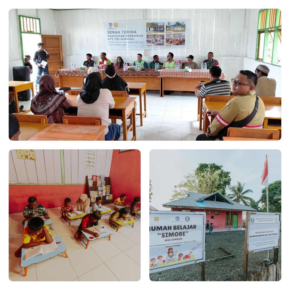 Komitmen Harita Nickel tidak berhenti pada pembangunan fisik gedung sekolah. Di Desa Gambaru, telah berdiri sebuah rumah bercat merah yang menjadi pusat keceriaan anak-anak pesisir, yakni Rumah Belajar Simore. Dalam bahasa lokal, Simore berarti “ceria”, sebuah nama yang mencerminkan lingkungan belajar tanpa tekanan.